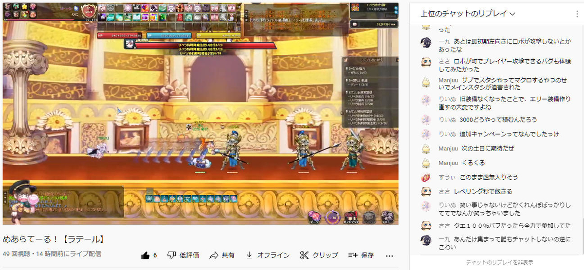 見せるついでにレベリングしたけど配信しながらだとあっという間で、意外と気楽にやれたのでラテール配信結構良いかもしれない。ダイレクトに反応貰えて嬉しいし